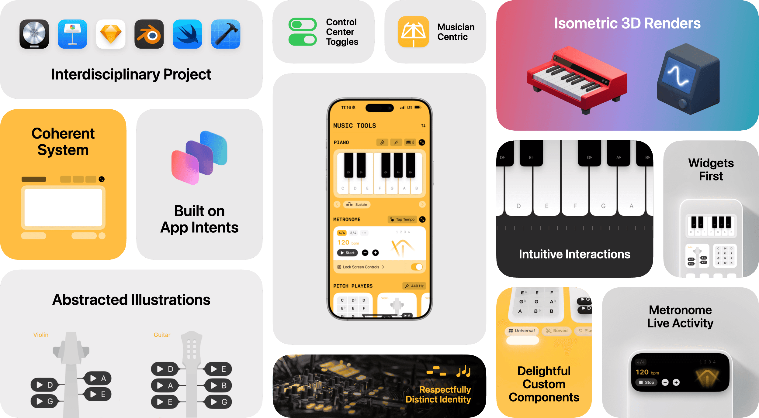 Music Tools brings the most vital tools to musicians throughout the system — in places like widgets, controls, and Live Activities. I designed the app and prototyped the app with SwiftUI.