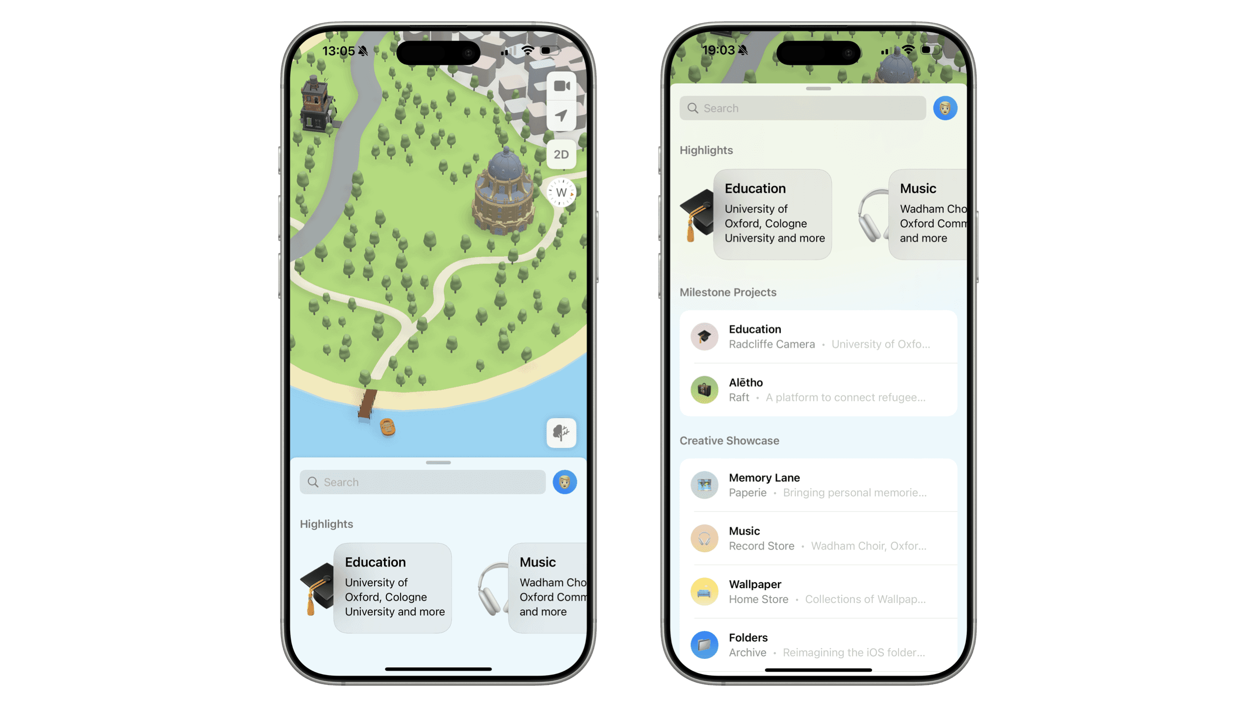To tell this unusual story, I set out to design and build an interactive portfolio map app on the SceneKit framework and inspired by the Apple Maps app, where buildings on a fictional faraway island represent the milestones of my life so far, or showcase individual interactions I designed.